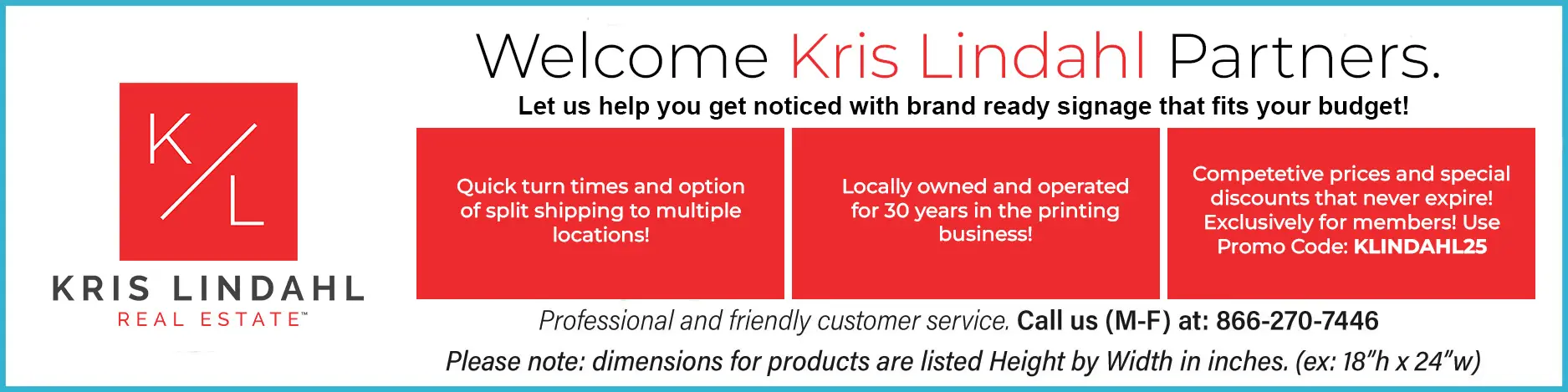 Super Cheap Signs provides affordable, high-quality yard signs, vinyl banners, aluminum signs, and car magnets tailored to Kris Lindahl Real Estate’s listing promotions, open houses, and branding needs.